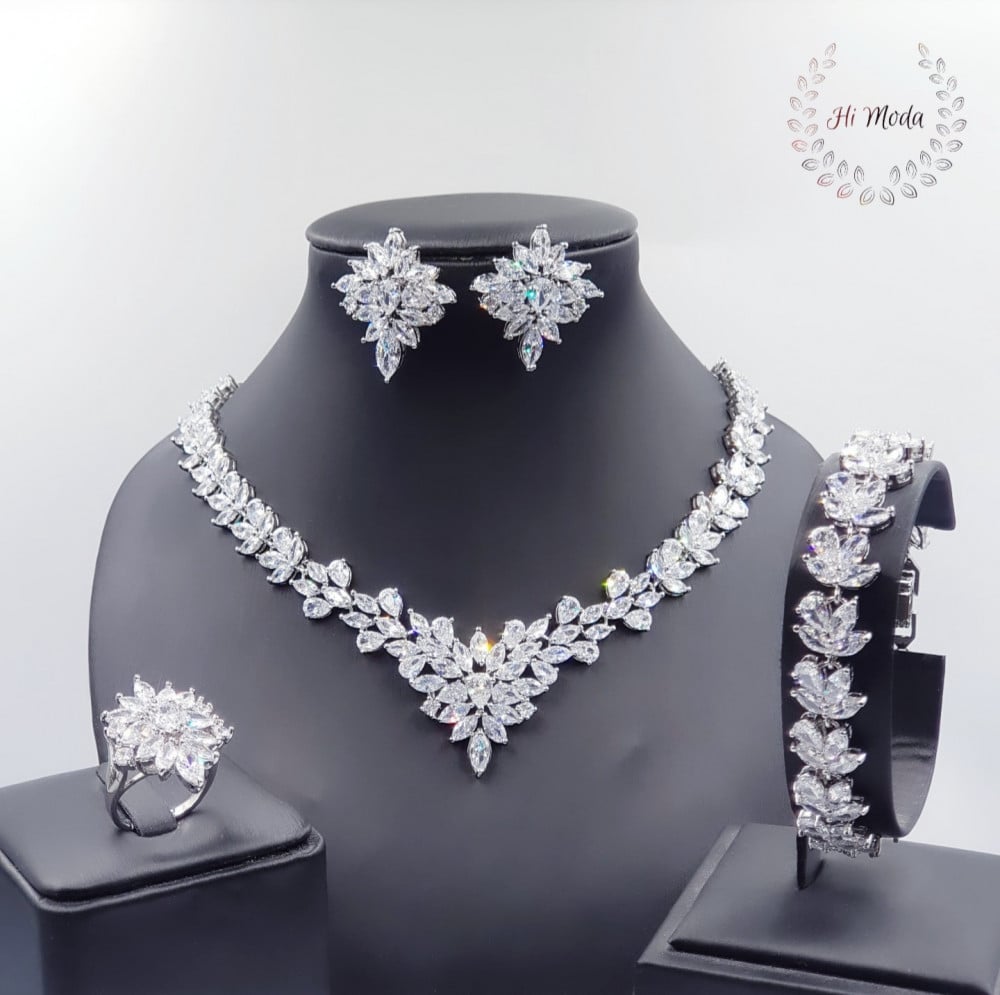 أضيفي لمسة من الأناقة والترف لإطلالتك مع طقم زركون ألماس نارين بيوتي ✨، مصمم خصيصاً لإبهار الحواس وجعلِكِ محطّ أنظار الجميع. هذا الطقم الفاخر ليس مجرد مجوهرات، بل هو تجسيد للجمال الراقي والأناقة الخالدة.